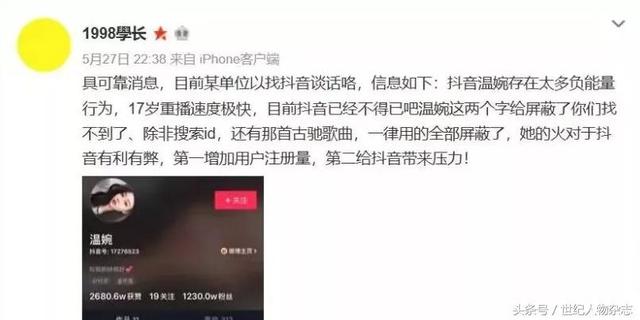前段时间,一个只有17岁的名叫“温婉”的高中生,在抖音短短几天凭借一条10秒的视频,就从一个普通高中女生蹿升为“抖音第一网红。”