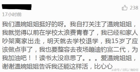 17岁的温婉已经辍学了,整容、人品差,为了傍到富二代整日混迹夜店等等,满满的负能量,也因此遭到了封号处理。